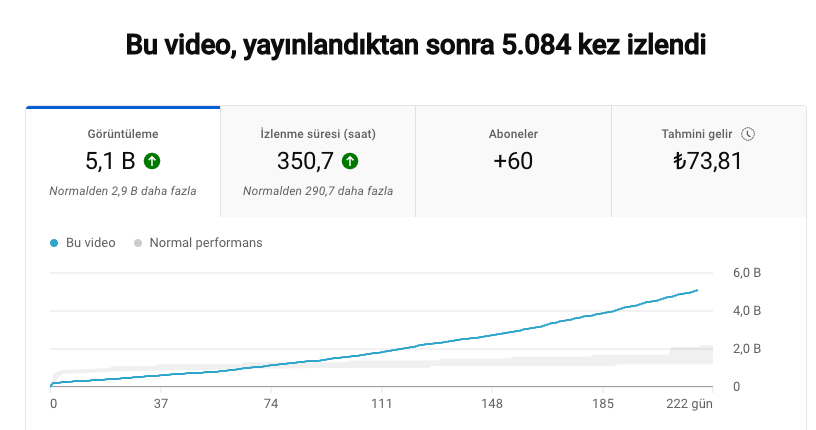73 ₺ kanala gelir sağlamış. Video süresi 21 dak. 54 san.